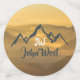 Monograma de montañas personalizables de amanecer dorado. Montañas dibujadas por vectores de color azul gris con un monograma personalizable y tu nombre. Como telón de fondo un impresionante amanecer dorado con niebla en el valle y rayos solares. Un gran regalo de alguien que ama las montañas.