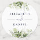 Confeti de mesa de boda floral azul marino con vegetación elegante personalizado con nombres de estilo de firma, iniciales de monograma, fecha de boda especial y mensaje. Diseñado por Thisisnotme©