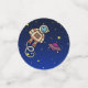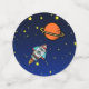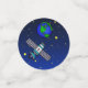 El cumpleaños de Moon Adventure Confetti presenta a un astronauta posando desde una luna creciente, con estrellas a su alrededor. Estaciones espaciales, astronautas, planetas y estrellas. Personalizable Texto curvo sobre el astronauta que dice: "3...2..1... ¡Explosión!" El texto del personalizable de abajo dice: "Cumpleaños 6 de Ethan". Establezca la mesa de cumpleaños perfecta para los pequeños amantes del espacio con Moon Adventure Confetti.