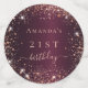 Para un elegante cumpleaños número 21 (o cualquier edad). Un color de fondo burdeos de aspecto metálico. Decorado con rosa de oro falso polvo purpurina. Personalice y agregue una foto, nombre y edad. La palabra cumpleaños se escribe con un guión moderno de estilo con letras a mano con toques.