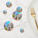 Este Confetti presenta un lindo unicornio bebé con arco iris y flores de color rosa y azul. ¡Ideal para la fiesta de cumpleaños de las niñas! Bonita decoración de mesa.