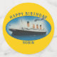 Titanic Birthday Yellow RMS White Star Line Ship Confetti. Personalizar este divertido diseño Titanic Birthday personalizando el nombre para el mejor fiesta de la historia! En la colección Titanic Oval Birthday Party (Fiesta del Cumpleaños del Titanic) se pueden encontrar suministros para fiestas de coordinación y juegos con este diseño. Disponible en los siguientes colores divertidos para ropa de niño, adolescente y familiar, juegos y accesorios: Amarillo Heroico, Rojo Starfire, Vamos Verde, Negro Raven, Rojo Robin Naranja y Púrpura Fantasma. Este diseño gráfico muestra mi pintura al óleo original, copyright 2/1995.