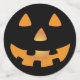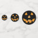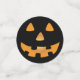 Confeti de la fiesta de Halloween con una linterna de calabaza sonriente en naranja y negro.