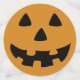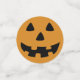 Confeti de la fiesta de Halloween con una linterna de calabaza sonriente en naranja y negro.