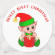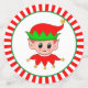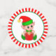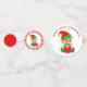 Los elfos de Navidades cortos sobre el confeti de mesa rojo y blanco. El texto en el gran confeti puede ser personalizado.