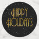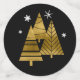 Diseños de coordinación para Navidades con un tema de fondo en tonos dorados, negros y blancos; el primero incluye siluetas de cabeza de ciervo con cortantes curvados, flechas estilizadas y pequeños copos de nieve sobre un fondo de efecto texturizado; el segundo es rayas en blanco y negro dorado, mientras que el tercero es un patrón de estilizados árboles navideños y copos de nieve sobre un fondo negro. El texto 'Felices vacaciones' es opcional. Busque ID861 a ID864 para ver opciones de color adicionales y otros productos en este moderno conjunto de diseño de Navidades.