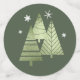 Diseños de coordinación para Navidades con un tema exterior en tonos verde y blanco musgo; el primero incluye siluetas de cabeza de ciervo con cortantes curvados, flechas estilizadas y pequeños copos de nieve sobre un fondo de efecto texturizado; el segundo es rayas en dos tonos verdes y blancos, mientras que el tercero es un patrón de árboles estilizados de Navidad y copos de nieve sobre un fondo verde más oscuro. El texto 'Felices vacaciones' es opcional. Busque ID861 a ID864 para ver opciones de color adicionales y otros productos en este moderno conjunto de diseño de Navidades.