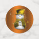 Los Navidades más amables de los hombres de nieve, confetti dorado, le dan un toque festivo y alegre a sus decoraciones navideñas esta temporada. Este confeti de Navidades tiene un pequeño muñeco de nieve vestido con chaleco de terciopelo dorado y sombrero de tope, rodeado de estrellas en un fondo naranja metálico.