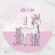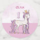 ¡Un poni rosa dulce está bailando con el número uno! Los detalles con aspecto de oro se tejen en su melena y cola. ¡Un regalo, un recuerdo o un regalo perfecto para desear a cualquier chica su primer cumpleaños! Puede personalizar el nombre de este elemento.