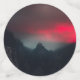 Fotografía paisajística de una puesta de sol irreal tomada en el lago Lago di Fusine, Italia. El color rojo es un poco exagerado, pero parado ahí en la vida real se sentía así. En un momento corto el sol rompió la niebla y casi desapareció.