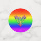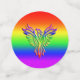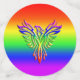 Magnífico confeti LGBT. Tienen un aspecto grabado en relieve, un fénix arcoiris, alas estiradas y levantadas de las cenizas sobre un fondo arcoiris a juego.