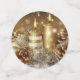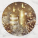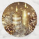 Una hermosa foto de velas de oro y blanco quemándose con bellotas y adornos, regalos y nieve