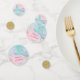 Este dulce confetti de mesa presenta una colorida cola de sirena con falsos adornos purpurinas de oro.