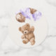 Añada un toque personal a su celebración de cumpleaños con estos artículos fiestas de diseño y memorables. El diseño presenta un oso de peluche con globos morados sobre fondo beige.
