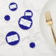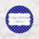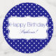 Confeti de cumpleaños con motivos de puntas de polka azul y blanco de la marina. El diseño presenta un patrón de puntos polka azul marino sobre blanco y una forma blanca en el medio con el texto personalizado.