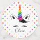Haga su cumpleaños mágico con el Confetti de cumpleaños Glam Rainbow Unicorn diseñado por Enchantsofisticada Design Company. Este cuadro de diálogo presenta el contorno de la cara de un unicornio con pestañas glamorosas, orejas, un peinado y un fabuloso cuerno de unicornio arcoiris brillante. Las estrellas del arco iris acentúan el diseño añadiendo un toque de fantasía.