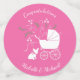 ¡Incluya al hermano mayor o al bebé de piel de su hermana en la celebración con este adorable diseño de ducha de Bulldog francés! Perfecto para un amante de la Francia con un bebé en camino. El Frenchy está al lado de un adorable carro vintage. ¡El Rosa lo hace perfecto para una niña en camino!
