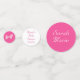 Pink and white confetti pieces are personalized! The large confetti piece features a pale pink background on one side, a bright pink background on the other. Your message/baby's name is displayed on either side. Medium-sized confetti feature a pale pink background to the image of fluffy, white clouds on one side, a white background to bright pink text on the other. Finally, the small confetti feature a bright pink background to the image of a pink bow on one side, a white background to the initial you supply displayed in a bright pink font on the other.