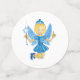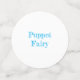 ¡Ideal para una fiesta de cumpleaños con temática de marionetas! Una marioneta de madera con miedo al escenario asoma por detrás de una colorida cortina, marioneta azul de hadas y piedras preciosas. Texto: Pinocho y Títere de hadas visitan el PartidoFábrica para hacer coincidir los suministros de fiesta de Pinocho!