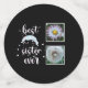 Ilustracion lindo y ondulado con pelo, pestañas, estrellas y dos plantillas de fotos. Haz clic en personalizar para cambiar las imágenes a las de tu hermana (las fotos cuadradas funcionan mejor), o cómpralo tal cual.