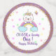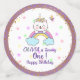 Cuidados y coloridos estrellas doradas pastel unicornio chica de primer cumpleaños fiesta confetti. El diseño presenta un lindo gato de unicornio sobre el arcoiris, coloridas estrellas pastel, celeste brillante dorado, borde violeta y plantilla de personalizable, usted puede cambiar texto fácilmente y celebrar su fiesta de cumpleaños de chica o ducha de bebé.