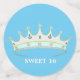 La princesa de moda corona por 16º cumpleaños en la mesa azul turquesa y blanca Confetti. Ideal para celebraciones de cumpleaños 15, 16, aniversario y otras festividades.