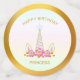 Cuta princesa de cumpleaños unicornio, corazones, flores en colores pastel y mesa de oro. El texto en los grandes confeti puede ser personalizado. ¡Ideal para todas las edades!