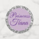 La princesa real africana personalizada Confetti en morado, morado claro, purpurina plateado y blanco. Personalizar para igualar tu ducha de bebé con temática real o princesa real fiesta de primer cumpleaños ©2022 Miss Fiesta de Sassy Diseños