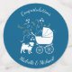 ¡Incluya al hermano mayor o al bebé de piel de hermana en la celebración con este adorable diseño de ducha de bebé de perro de pug! Perfecto para un amante de los cachorros con un bebé en camino. El pug está al lado de un adorable carro vintage. ¡El fondo azul lo hace perfecto para un niño!