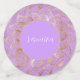 Elegante y ostentoso morado de atardecer con fiesta monogramado de oro.