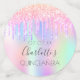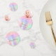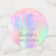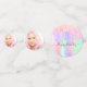 Confeti giratorio y femenino para tu Quinceañera, 15 cumpleaños de mesa. Un arcoiris, fondo holográfico de color morado, rosa, oro rosa y verde menta, decorado con goteos purpurinas de color arcoiris. Personalice y agregue una fecha y un nombre/edad. Letras de color gris. Algunos confietti con nombre y fecha, otros con el texto: Feliz cumpleaños escrito con un moderno guión escrito a mano con chispas. Añade tu propia foto en dos de las fichas.