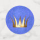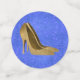 Hermoso confetti personalizado para tu fiesta Quinceañera o Sweet 16 hecho en azul zafiro y oro. Gráficos de una corona, purpurina, tacones altos dorados, estrella y una gran joya de zafiro decoran las piezas individuales, con texto personalizado, en un lado del disco más grande. Personalice el texto para el día especial de su hija.