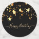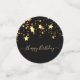 Confeti giratorio y femenino para una cena de Quinceañera, 15º cumpleaños. Un elegante fondo negro adornado con estrellas de oro falso. Plantillas para una fecha y nombre/edad. Letras de colores dorados. Algunos confietti con nombre y fecha, otros con el texto: Feliz cumpleaños escrito con un moderno guión escrito a mano con chispas.