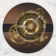 Antiguo, fantásticos relojes con engranajes de oro y latón sobre un fondo marrón y oxidado. Estilo Steampunk.