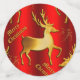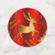 Este confeti de mesa de Navidades muy festivo presenta un patrón de reno dorado, con pequeños rociadores dorados de nieve sobre un fondo colorido y metálico de gradiente rojo.