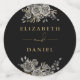 Elegante mesa de boda gótico floral de rosas negros y dorados, personalizada con nombres de estilo, fecha boda especial y mensaje. Diseñado por Thisisnotme©