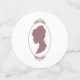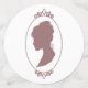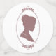 Rosas suaves rosas y elegantes detalles de estilo Bridgerton Regency enmarcan dos clásicos cameos femeninos, todo ello con un fondo blanco limpio.
