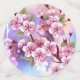 Dibujado artísticamente, rama de rosa, flores de cerezo sobre fondo pintoresco, texturizado, pintado con pintura blanca, rosa y azul. Pink Sakura