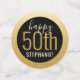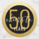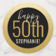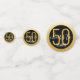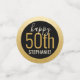 Personalizado Negro y Oro Personalizado Gran Mesa de Cumpleaños sobredimensionada Confetti Sprinkles para una moderna y elegante fiesta de cumpleaños para cualquier edad con un falso borde de círculo de Relieve metalizado dorado. Añada el nombre y edite la edad para cualquier celebración de cumpleaños con el texto "Saludos a los 50 años" y "¡Feliz 50!".