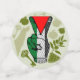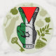 Rótulo de victoria mano con símbolo del triángulo rojo de la resistencia palestina y patrón de diseño de Keffiyeh. Arte gráfico vectorial original Derechos de autor BluedarkArt TheChameleonArt.
