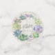 Las fuentes únicas, los coloridos suculentos acuarelas y los rústicos fondos de madera de madera son los puntos fuertes de estos productos bodas de mezcla y coincidencia. Este hermoso diseño de confeti tiene una corona suculenta central junto con una plantilla para editar los nombres de la novia y del novio y la fecha del boda con un fondo de madera al revés. Busque ID515 para ver todos los productos coincidentes de este conjunto.