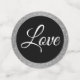 Estas piezas de confeti de mesa son una mezcla de negro, plateado y azul turbio. Un lado tiene el aspecto purpurina de imitación azul y el otro una fina impresión purpurina. Gráfica de impresión Dusty Blue purpurina y purpurina plateado. El texto de ejemplo dice "amor", "felicitaciones", "nombres de ejemplo de Gregg & Lisa". Cambia a tus propias opciones de texto personalizadas. Personalizar este artículo o compre como está diseñado.