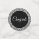 Estas piezas de confección de mesa son una mezcla de negro, plata y vino/ciruela. Un lado tiene un gráfico de purpurina de vino/ciruela y el otro tiene una impresión de purpurina plateado con texto para personalizar o compra como se muestra. El texto dice "Amor", "Felicitaciones", "La muestra de nombres mostrada es Gregg y Lisa". Personalizar este artículo o compre como está diseñado.