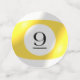 En el siglo XIX, una sala de juegos era una sala de apuestas para caballos. Se instalaron mesas de billar para que los mejores pudieran pasar el tiempo entre carreras de caballos. Billards, o pool, es el descendiente de un juego similar al croquet que se jugó en la Europa del siglo XV. Aunque no sabemos con certeza, se sospecha firmemente que miles de millones llegaron a Estados Unidos con colonos holandeses e ingleses. Para el siglo XVII, los hábiles fabricantes de gabinetes estaban construyendo hermosas mesas, aunque el equipo era, de lo contrario, bastante primitivo. La piscina de 15 bolas llegó a la escena a fines del siglo XIX y creció en popularidad a lo largo de los años 40. Billiards fue revivido en 1961 con el estreno de la película THE HUSTLER. Disfrutó de otra oleada a mediados de los años 80 con el lanzamiento de la secuela de la película, COLOR DE DINERO. Desde entonces, ha habido una evolución de los alrededores en los que encontramos mesas de billar — están en restaurantes, clubs nocturnos y bares deportivos, lo que permite a la piscina encontrar una audiencia moderna y nuevas generaciones de entusiastas. Este maravilloso diseño presenta la audaz bola de rayas amarillas del NINE . ... . hacer de este tablefetti una excelente elección para los 9 cumpleaños, aniversarios . ... . o cualquier otro notorio noveno. Lo inverso es un texto amarillo sólido de coordinación con el texto que puedes personalizar para tu evento especial "noveno".