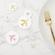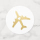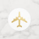Confeti de mesa diseñado para un baby shower o fiesta de soltera con tema de viaje, boda de destino, o fiesta de compromiso o recepción con tema de viaje y aventura, presenta aviones de falso oro con un corazón en el medio en un lado, y diseño de avión de color personalizado en la parte posterior, se muestra aquí en rosa dorado rosado.