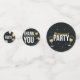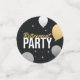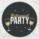 Bold, festive, and full of energy — this design features crisp white lettering with shimmering gold accents and celebratory icons like stars and champagne glasses. Perfect for adding a lively pop to tables, dessert displays, or gift stations.