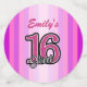 Tonos violetas modernos y números purpurinas rosados. Monograma personalizado