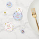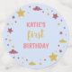 Esta linda y elegante pequeña estrella de dos mantas" primera mesa de cumpleaños presenta un fondo blanco y azul bebé con falsas estrellas purpurinas de oro y rosa.
