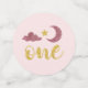 Esta bonita y elegante "pequeña estrella de dos mantas" de primera mesa de cumpleaños presenta un fondo blanco y rosa con falsas estrellas purpurinas de oro y rosa.