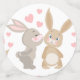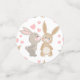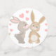 Los conejos guapos se besan. El fondo es blanco con un patrón de corazones rosados